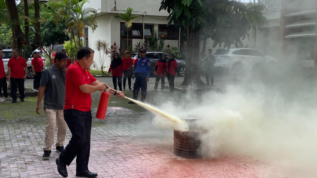 Usai penyampaian materi, kegiatan dilanjutkan dengan simulasi evakuasi bencana dan pemadaman api menggunakan Alat Pemadam Api Ringan (APAR) serta praktik teknik dasar penanggulangan kebakaran yang dilaksanakan di halaman Pengadilan Negeri Yogyakarta. Kegiatan berlangsung lancar dan penuh antusiasme. Para peserta aktif mengikuti instruksi, sekaligus berlatih langsung menggunakan APAR untuk memadamkan api. Melalui kegiatan ini, diharapkan seluruh aparatur Pengadilan Negeri Yogyakarta semakin memahami pentingnya keselamatan dan keamanan di lingkungan kerja serta mampu merespons situasi darurat dengan cepat, tepat, dan terkoordinasi.