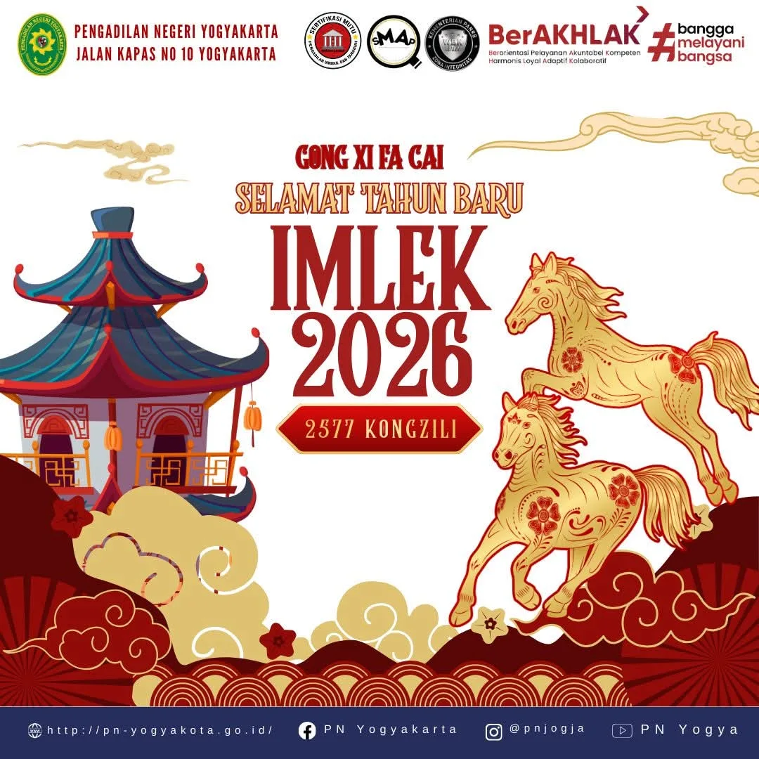 Menindaklanjuti Surat Edaran Sekretaris Mahkamah Agung Republik Indonesia Nomor 2 Tahun 2026 Tentang Penetapan Jam Kerja Pada Bulan Ramadhan 1447 Hijriah di Lingkungan Mahkamah Agung Republik Indonesia dan Badan Peradilan Dibawahnya, jam kerja bagi Hakim dan Aparatur Sipil Negara di Lingkungan Pengadilan Negeri Yogyakarta Kelas IA sebagai berikut: