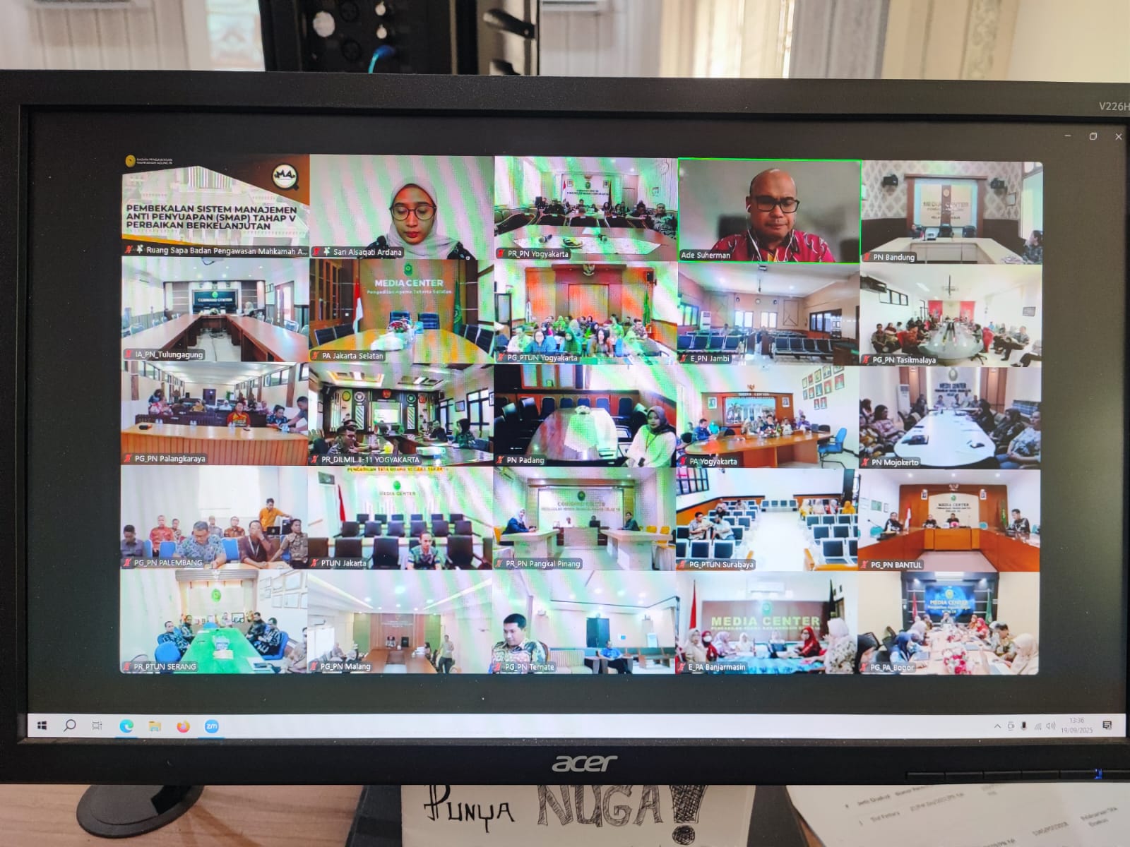 Jumat, 19 September 2025, pukul 13.30 WIB, bertempat di ruang Command Center Ketua Pengadilan Negeri Yogyakarta, Tuty Budhi Utami, S.H., M.H. didampingi Tim SMAP Pengadilan Negeri Yogyakarta mengikuti kegiatan Pembekalan SMAP tahap V (Perbaikan Berkelanjutan) tahun 2025 secara daring. Kegiatan pembekalan dilaksanakan sehubungan dengan Surat Keputusan Kepala Badan Pengawasan Mahkamah Agung RI Nomor: 16/BP/SK/PW1.1.1/III/2025 tentang Penunjukan Tim Pendampingan Sistem Manajemen Anti Penyuapan (SMAP) Tahun 2025. Dan berdasarkan surat keputusan tersebut maka pelaksanaan SMAP telah memasuki Tahap V (Perbaikan Berkelanjutan).