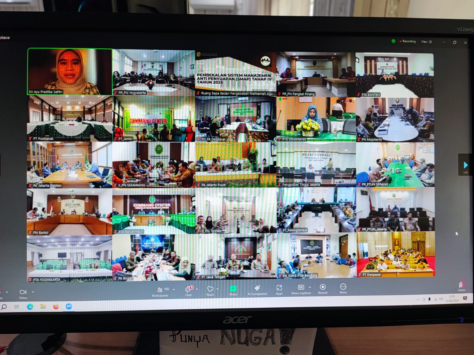 Jumat, 15 Agustus 2025, pukul 09.00 WIB bertempat di ruang Command Center sesuai surat Direktur Jenderal Badan Peradilan Umum MA RI nomor 193/DJU/UND.KP3.4.4/VIII/2025 tanggal 11 Agustus 2025, Ketua Pengadilan Negeri Yogyakarta menugaskan Hakim, Setyaningsih, S.H. dan Panitera Muda Khusus Tipikor, Heny Suryani, S.H. untuk mengikuti kegiatan pelaksanaan pemberian penilaian Hakim Tinggi Pengawas Daerah Terbaik Tahun 2025 secara daring. Adapun Hakim Tinggi Pengawas Daerah yang dinilai sesuai dengan yang telah diusulkan oleh Pengadilan Tinggi yang membawahi satuan kerja masing-masing. Pengadilan Tingkat pertama yang ditunjuk menugaskan satu orang Hakim dan satu orang dari bagian Kepaniteraan untuk memberikan penilaian. Teknis informasi penyampaian penilaian disampaikan oleh Tim pelaksanaan penilaian Hakim Tinggi Pengawas Daerah Terbaik Tahun 2025 dan penilaian disampaikan melalui link yang telah tersedia.